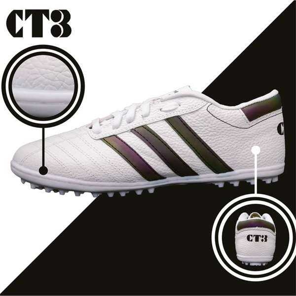 Giày ba sọc CT3 DA NHĂN - trắng - sọc đen